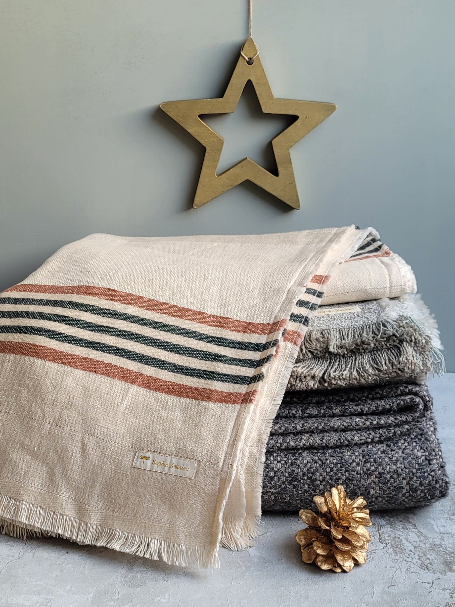 © Sophie Antoine Maison Figuier – Création de Plaids tout en lin tissé & Laine Libeco –